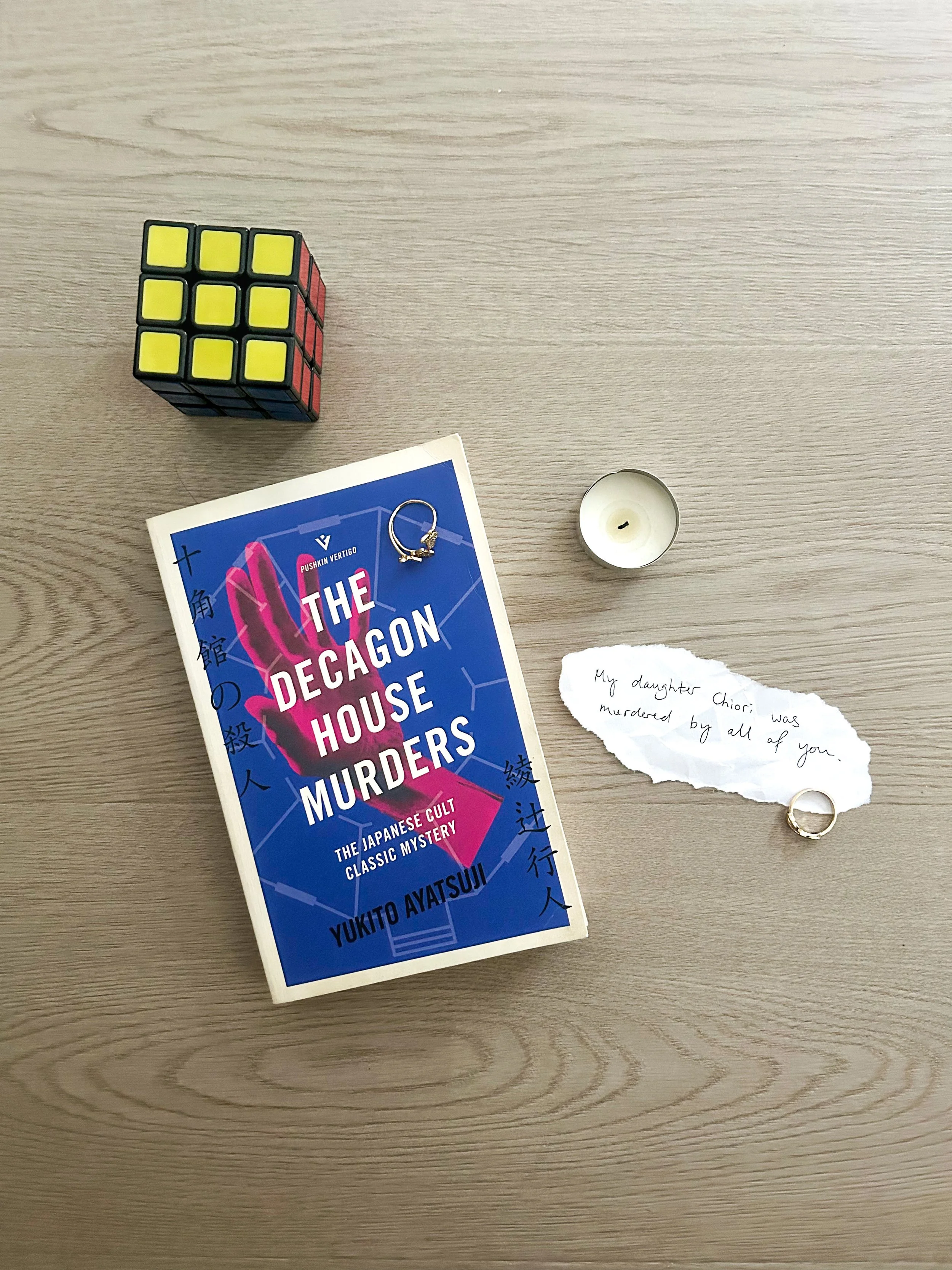 I thoroughly enjoyed this one and couldn’t put it down! There’s two narratives happening simultaneously but all lead back to one, big murder. Ayatsuji had written it cleverly; I had a slight inkling of who committed the crime but couldn’t figure out how!
